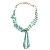 Early Native American Double Strand Turquoise and Heishi Bead Jacla Necklace
