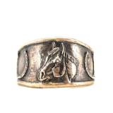 Vintage 10K Yellow Gold Native Ring with Turquoise Center Stone