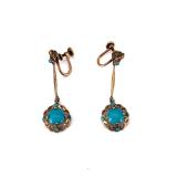 14K Rose and White Gold European Earrings with Diamonds and Rubies
