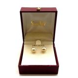 Pair of 14K White Gold, Pearl, and Diamond Earrings