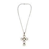 18K Yellow Gold Filigree Green Enamel Cross Pendant