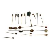 Antique Rose Gold Hat Pin with Diamonds and Rubies