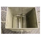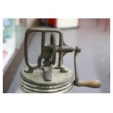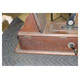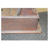 Furniture: Oak 10-Section Store Seed Cabinet w/Lift Lids and Glass Front Drawers, “Sellers” Large Oak Kitchen Cabinet w/Flower Bins and Porcelain Top, Oak Hoosier Porcelain Top Kitchen Cabinet w/Flower Bin, “Bell” Systems Wooden Phone Booth, 3 Dove Tailed Blanket Chests, Soft Wood Dry Sink w/High Back and 2 Drawers in Top, As New Oak Round Pedestal Table w/4 Matching Pressed Back Chairs, Oak 2-Piece Glass Door Hutch, 2 Door Oak 10-Gun Gun Cabinet, Vintage Green Oak Dinette w/4 Chairs, Vintage Green Oak Kitchen Cabinet w/Porcelain Top, Large Stippled Finish Jelly Cupboard, 3 Wood Kitchen Utility Cabinets, Floor Model Radios, Oak Secretary Desk, Wood Curio Cabinet, 2 Oak Bow Front China Cabinets, 8’ Church Pew, 2 4’ Church Pews, 2 Large Oak Book Shelves, 2 Adjustable Shelf Book Shelves, 3 Stackable Oak Bookcases, Wood Chimney Cupboard, 2 Piece Wooden Display Cabinet w/Storage Base, Metal Dutch Oven Display Rack, Wooden Spinning Wheel, Brass Bird Cage w/Stand, Nostalgia Electric Vender Popcorn Machine, Dovetailed Dough Tray on Stand