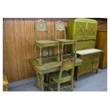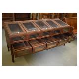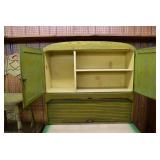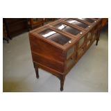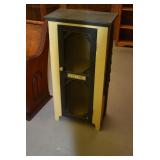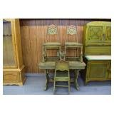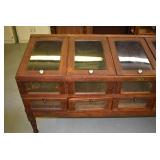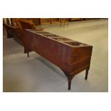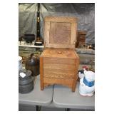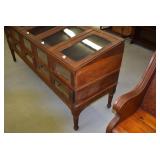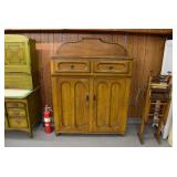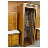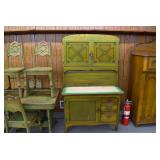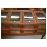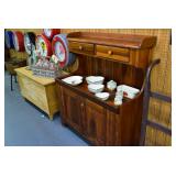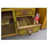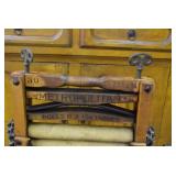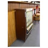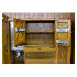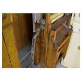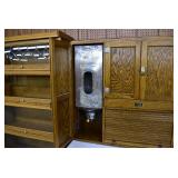 Furniture: Oak 10-Section Store Seed Cabinet w/Lift Lids and Glass Front Drawers, “Sellers” Large Oak Kitchen Cabinet w/Flower Bins and Porcelain Top, Oak Hoosier Porcelain Top Kitchen Cabinet w/Flower Bin, “Bell” Systems Wooden Phone Booth, 3 Dove Tailed Blanket Chests, Soft Wood Dry Sink w/High Back and 2 Drawers in Top, As New Oak Round Pedestal Table w/4 Matching Pressed Back Chairs, Oak 2-Piece Glass Door Hutch, 2 Door Oak 10-Gun Gun Cabinet, Vintage Green Oak Dinette w/4 Chairs, Vintage Green Oak Kitchen Cabinet w/Porcelain Top, Large Stippled Finish Jelly Cupboard, 3 Wood Kitchen Utility Cabinets, Floor Model Radios, Oak Secretary Desk, Wood Curio Cabinet, 2 Oak Bow Front China Cabinets, 8’ Church Pew, 2 4’ Church Pews, 2 Large Oak Book Shelves, 2 Adjustable Shelf Book Shelves, 3 Stackable Oak Bookcases, Wood Chimney Cupboard, 2 Piece Wooden Display Cabinet w/Storage Base, Metal Dutch Oven Display Rack, Wooden Spinning Wheel, Brass Bird Cage w/Stand, Nostalgia Electric Vender Popcorn Machine, Dovetailed Dough Tray on Stand