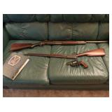 Collectibles: Quilt, antique books, Roseville and Weller pottery, Frankoma, lots of china, Nippon, Noritake, collectible birds by Andrea, sterling and silver-plate flatware, Reed and Barton Victorian tea set, Winchester model 1897 12-gage shotgun, Winchester model 6 .22 rifle, RG 38-special pistol, Reed and Barton sterling candle sticks, sterling Gorham antique Colonial, lots of vintage decorative collectibles, vintage linens, vintage pictures, Wilton aluminum-ware, Fenton Harmony House china, Carnival glass, South Bend bamboo fly rod, Art Deco flower frog, head vase, Napco, Lefton, Seth Thomas Adamantine mantel clock, AC Blue Eagle glasses, McCoy cookie jug