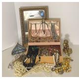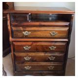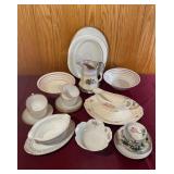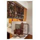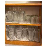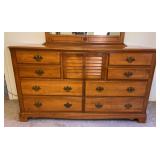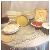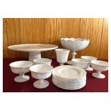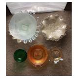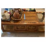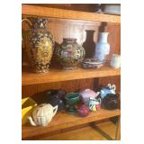 Discover within this auction wonderful finds such as Depression Glass, vintage crystal, pottery, antique Jacobian style cabinet, mid-century style furniture, double door dry bar, Currier & Ives China set, vintage Ethan Allen furniture, Oiler's collectibles, and more.