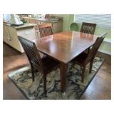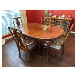 NICE DINING TABLE W CHAIRS (LEAVES UPSTAIRS) |