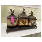 LOT OF 3 ROOSTER THEMED CANISTERS |