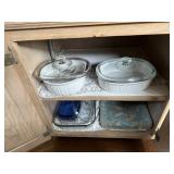 LOT OF MISC KITCHEN BAKING DISHES ETC |