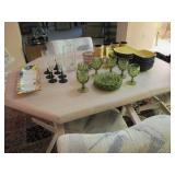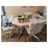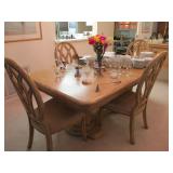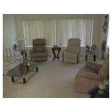 | Nice clean sale: Mirror & console, dinette set, dining set, buffet & 6 chairs, leather recliner & 2 others, sofa/love seat, coffee & end table sets, twin bed set, queen mattress & box springs, media center, area rug, barometer, Kirby vacuum, dressing table, silk tree, garden bench, pictures, lamps, grill, linens, kitchenware & a few tools. |