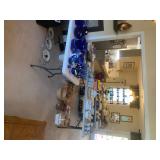 Household items, furniture, home decor, kitchen appliances, dishes, glassware, China, blue/cobalt glass, crystal, adult female clothing, shoes, jewelry, electronics |
