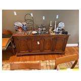 WHAT IS IN THIS AUCTION? This online auction features furniture such as a sofa, bedframes, bench, lounge chairs, outdoor patio set, vintage tables, folding chairs, shelving units, Drexel nightstand, TV stand, Drexel desk, chairs, side table, dresser, poker table, curio cabinet, nesting tables, office chairs, work table, file cabinets and others, small kitchen appliances, kitchenware, Corningware, LS & S china, fitness equipment, office supplies, linens, wicker basket, jewelry, accessories, games, books, wall art, yard tools and much more!
