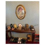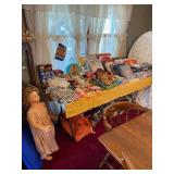 Loaded! Dining room table, chairs & matching hutch cabinet, kitchen set with 4 chairs, kitchen island painted red & white, wood console table, bakers rack, round wood tilt table, upright piano, bedroom furniture, metal cabinets, assorted lamps, mirrors & tables, fixtures, costume jewelry, art, collectibles, comics, Raggedy Ann & Andy & other vintage dolls, games, loads of Christmas, linens, tea cups & saucers, china, kitware, flatware, air conditioners, TV's, vintage tinder box, retro clothing & more! |