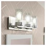 The dazzling Samantha Chrome Finish 3-Light LED Vanity Bar boasts a traditional, minimalist design to complement any decor. Double-glassed (clear and frosted) candles sit atop intricately-detailed metal framework as they are illuminated with incandescent up lighting and LED down lights. Uses (3) B10 bulbs up to 60 watts of CFL or LED equivalent (sold separately). Fixture dimensions: 19.5"W x 7.9"H x 5.5"D. Mounting deck: 5.1"H x 1.2"W. Hardwired. Can be installed facing up or down. Includes hardware. Compatible dimmers sold separately.
