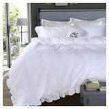 **Size QUEEN** LHKIS Farmhouse Duvet COVER Set with Ruffles - White