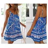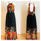 **Size MEDIUM** Women's Sleeveless Halter Neck Floral Print Open Back Maxi Dress