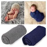 2-Pack Newborn Photography Props Swaddle Wrap - Grey & Navy Blue