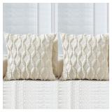 LHKIS 2-Pack 20" x 20" Velvet Luxury Soft Wool Decorative Throw Pillow COVERS - Beige