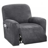 H.VERSAILTEX 4-Piece Plush Velvet Recliner Cover - Grey