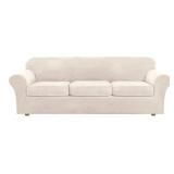 H.VERSAILTEX 4-Piece Plush Velvet Extra Large Sofa Cover for 3 Cushion Sofa - Off White