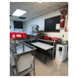 Equipment to Convey, Not Limited to: ALL Seating, Numerous Bench Tables/Benches, Tables with Chairs, Large Pop-Up Tables, Sandwich/Salad Preparation Table, Multiple Walk-in Coolers and Freezers, Gas Range Oven, Multiple Food Mixers, Commercial Pots & Pants, Commercial Silverware, Commercial Coffee Makers, Commercial Tea Makers, Dishwashers, Stainless Steel Prep Tables, Chaffers, Storage Racks, Ice Makers, Catering Warmers, Meat Grinders, Meat Slicers, Cups, Plates, Bowls!