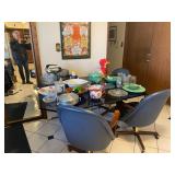 LOTS of Furniture - Leather Sofa, End Chairs, Accent Furniture, Bedroom Furniture, Dining Tables and much more! 12 person Dining Room Table and Chairs Vintage Children's Toys and Games Brunswick Pool Table Vintage Typewriters and Sewing Machines Collections: Crystal, Wedgewood Jasperware, China and more Tools Table and Floor Lamps Seasonal Decor - Vintage Desk, Desk Chair and Office Supplies Kitchen Dishes, Serving Dishes, Pots and Pans and Bakeware Large Assortment of Artwork and Mirrors Serving Dishes LOTS of Home Decor And Much, Much More!