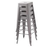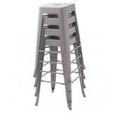 The bar stools stack together, one over the other, for easy transport and spacing-saving storage.
