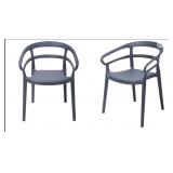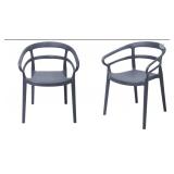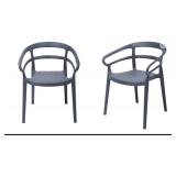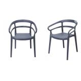 Amazon Basics Dark Grey, Curved Back Dining Chair-Set of 2, Premium Plastic