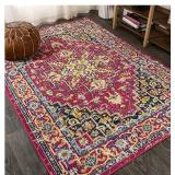 Brooklyn Geometric Medallion Bohemian Indoor Area-Rug Country Easy-Cleaning Bedroom Kitchen Living Room Non Shedding, 3 X 5 FUCHSIA/PINK