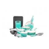 GreenLife Soft Grip Ceramic Non-stick Cookware Set, 18 Piece, Turquoise, Dishwasher Safe - MISSING THE CUTTING BOARD AND STAINLESS-STEEL STEAMER