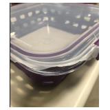 Ello Glass 2 Qt 8x8 Plum Purple Duraglass Baking Dish with Oven Safe Silicone Sleeve