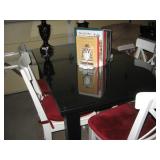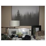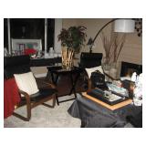 To highlight- Beautiful King bedroom set with King mattress; Two small desks; casual chairs; large round glass table top on pedestal with four leather chairs; Gray sectional sofa; Sway floor lamps; many books; CD's and DVDs; some collectables; Two men's bicycles; Tools; Men's clothing size L & XL; Leather sofa; much framed art; casual kitchen table /4 chairs; golf clubs; modular gray entertainment cabinet with glass throughout; record albums a few are "obscure"; area rugs; household items and much more. |