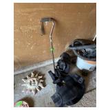 LOT OF MISC GARDEN TOOLS / FOLDING STOOL |