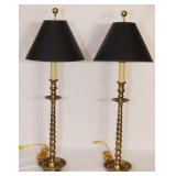 - Pair Of Visual Comfort Brass Barley Twist Candlestick Lamps W/ Black Shades (R-19)
