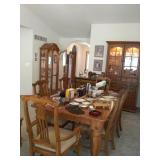 ITEMS BEING OFFERED INCLUDE: Beautiful Hoosier cabinet; round oak kitchen table with two leaves and four chairs; LazyBoy leather sofa; Lexington dining table with six chairs and two leaves; Bob Timberlake lighted hutch; two lighted oak chinq cabinets; Laura Ashley bedroom set with king size bed (headboard, footboard, mattress and boxspring), dresser with mirror, wardrobe and chest of drawers; grandfather clock; several bookcases; console table with matching mirror; square oak side table with turned legs and glass ball feet; wash stand; what-not shelf; caned antique caned bottom chairs; oak fern stand pedestal; lamps; artwork; Fiesta Ware; crystal; kitchenwares; Whirlpool washer and electric dryer; large collection of Cherished Teddies; large collection of Imhoff Homestead terracotta figurines; quality men's clothing and shoes; ladies mink hooded jacket; cameras; linens hundreds of nice books; travel scrapbooks from all over the world; and much ,much more!!!