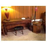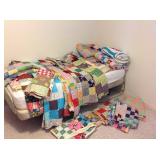 Seventeen hand made quilts. Tea cart Iron pigs, sad irons, lidded pots, bird, andirons, fireplace tools, cast iron miniature stove Oil painting, whiskey jugs, crockery bottle Vintage banquette dining set Wicker Weve dressers by Dixie brought from another sale Hand painted plates Single electric adjustable bed China cabinet, secretary, desks, chairs, trunk Tools, fishing equipment, garden and yard tools Dog kennels, bed steps Full kitchen, dishes, utensils, pots, pans Old cameras and tripods Executive desk, smaller desk, three really cool MCM desk chairs Blanket chest Heavy pine lamp tables Bakers rack Single church pew Garden shed full of equipment, tools, misc. More later, look for photos and description. |
