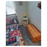 Main Floor: Vintage lamps, crystal vase, vintage benchs, mid century modern lamps, end rables, rugs, mirrors, Howard Miller Clock, Pyrex kitchenware, oster toasters, pots and pans, vintage fruit dish set, paintings, televisions, mid century modern dish set, holt howard dish set, power recliner sectional, Andre Ponche Designer Dish Set, Vintage Christmas decorations, nativity scene, panasonic tv, olympus camera, binoculars, polaroid camera, queen size bed, queen size bed frame, dresser, rocking chair, vintage wedding dress, vintage hats, vintage belts, sealy bed spreed, dirt devil vacuum, bowling balls, bowling balls bags, summmer living bowls, dining room table, bird house, toro, toro rake and vaccum blower, black and decker, black and decker drill, ooga horn, paint, crank organ, shovel, rake, edger, wagon, patio furniture, mulch, potting mix, christmas trees, 2nd Floor: Full size bed set, full size bed frame, toy chest, wooden chest, vintage dolls, vanity, vintage make up stand, end table, vintage lamps, jergens, linens, fur coat, leather coat, miele vaccum, vintage santa, fall decorations, reaths, end table, christmas lights, desk, office chair, office desk, regulator clock, smal desk, brass irom stand, books, bissell vaccum, eureka vaccum, Garmin GPS, Craftsman wet/dry vac, homak tool chest, Stanley portable wet vac, brother sewing machine, epson printer