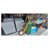 This sale is huge and does have a Washer/Dryer to include in Garage. Garage is loaded with lots of things, tools, tool boxes, Power Tools and Garage Cabinets, Holiday decor, Office supplies, Yard tools, Wheel Barrel, Storage Containers, 3 bedroom set with a Very Nice Queen set, Full set, and a twin set. 2 Leather love seats, Glass top end and coffee tables. NOT MANY BUT “Any” Items With Yellow Sticky Tags ARE NOT FOR SALE)Golds Gym Tred Mill, Office Desk, 2 Bikes, Fenton collectibles, Hummels, Artifical plants, GREAT Linens, (towels all look brand new) Bedding, Huge Amount of ladies clothing, Shoes in the Box, Beautiful Cedar Chest, Old Stereo record player with huge speakers and a 8 track player, Gate Legged table with 6 chairs, A tile top Dinette and 4 chairs, Grand Mother Clock, and a really nice Hump back chest.Lots of Flower Pots, porch bench, Silver Set, Lamps and so much more. Today the Washer /Dryer was added to sale. It is a Whirl Pool Washer and a GE dryer.