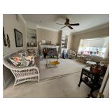 FURNITURE: G-PLAN Upholstered Wing Back Chair w/Ottoman, MCM Teak Head Board , MCM Teak Floating Night Stands/End Tables, MCM Teak Phone Bench, MCM Teak Round Stool, TO COOL MCM VINTAGE CURVED BAR!! - Lights Up!!!! Beautiful Crystal Chandelier, Century Oriental Style Dining Room Set: Beautiful Buffet/Server - End Table - Dining Room Table w/2 Leaves & 8 Chairs, Oriental Credenza w/Mother of Pearl Inlaid, 3 Oriental Style Glass Front China/Curio Cabinets, Dolphin Base Glass Top Dining Table w/6 Chairs, Hitchcock Small Side Table, White Wicker Sofa w/Pillows - 2 Easy Chairs - 1 Ottoman (sold as a set), White Wicker Tall Shelf, Rattan Table w/2 Chairs (Honeymoon Set), 2 Rattan Side Chairs - each different, Najarian Side Chair, Modern Cart w/Pull Out Extension (good for a bar, tea cart), Brass & Glass Square Coffee/Cocktail Table (very nice!), Brass & Glass Square End Table, Glass Top Sofa Table, 4 Ladder Back Chairs, 4 Matching Upholstered Stools/Ottomans, 2 Matching Upholstered Stools/Ottomans, Glass & Metal Coffee/Cocktail Table, 2 Matching End Tables, 6 High Back Upholstered DR Chairs, Pair of Inlaid Top End Tables, 2 Pink Plaid Stools, Upholstered Topical Floral Room Divider, Quality Office Furniture: Counter/Island w/Drawers For Storage & Files - Corner Desk - Desk - Desk w/Hutch Top - Office Chair, Straw Storage Trunks, Powell Easel, Neesen Floor Lamp, Mitsubishi Vintage Flat Screen TV, Lucite Table Lamp, Numerous Table Lamps & Floor Lamps, Howard Miller Calendar Clock (NIB), Tru-Space Closet Units, LLADRO: # 1. Lladro Girl with Geese #4815 # 2. Lladro “On the Town” Man & Woman w/Umbrella #1452 # 3. Lladro “Embroiderer” Woman in Chair Embroidering #4865 # 4. Lladro Sailor Boy & Girl on See Saw #1255 # 5. Lladro “Young Harlequin” Child on Chair w/Cat #1229 # 6. Lladro “A Tall Yarn” Old Sailor & Boy #5207 # 7. Lladro Geisha Girl # 8. Lladro “Matrimony” Bride & Groom # 9. Lladro Dove #10. Lladro 2004 Christmas Ball Ornament #11. Lladro “Basket of Puppies” Girl with Puppies #1311 ART WORK: 1. City Art Museum - St. Louis - Roscoe Misselhorn 2. Pavilion & Fountain - Forest Park - St. Louis - Roscoe Misselhorn 3. The Jewel Box - Forest Park - St. Louis - Roscoe Misselhorn 4. Municipal Opera - St. Louis - Roscoe Misselhorn 5. Flowers & Swan 6. “Market Day” - Boxer Pups - 1993 - Darlene Wilson - 237/300 7. Fox Hunt - 428/1275 8. H.M.S. Agamemnon - Geoff Hunt R.S.M.A. - Nelson’s First Flagship Leads the Squadron 9. Flowers - Ed Baynard 1978 - Watercolors Alexander F. Milliken Inc. 10. Flowers 11. Flowers 12. Flowers 13. Flowers 14. Blue Skies - Key West 15. Tropical Fish 16. Bank of the Seine - Landscape 17. Landscape - 2 Trees 18. Spring Domain Pintails - Ducks Unlimited 1988 - Flyway Collection - Pacific Collection - Ken Carlson 1259/5300 19. Rider on Horse - M Will Long on “Bertha” - Engraved by Edw Hacker 20. “Challenge” Golf Course 21. Chesapeake Dog - Signed & Numbered - Les Anderson Jr. - 369/500 22. Ducks - Richard Sloane 1980 - 326/1000 23. Ducks - Louis Frisino - 472/500 24. Maryland Map 25. 2 Ducks 26. 2 Ducks 27. Golf Clubs 28. Building - Lakeland Studio 29. Cathedral - Lakeland Studio 30. Landscape - Swirling Sky 31. Canada Geese - Eckelberry 32. Decoy Print - No Frame - Robert Bealle ‘86 33. Jug Bay Patuxent River - John Taylor 34. Setting Sale - Philip Gray 35. Boxers in Paradise - Signed 36. Map BVI 37. The Presidential House from Washington 38. View of the Capital at Washington 39. Map of Ireland 40. Map of Chesapeake Bay 41. Girl & Collie 42. Yachts of the America’s Cup - “The Schooner” - Special Edition - Signed 43. Map Carte de la Greece Ancienne 44. Trumpeter Swan - Cygnus Buccinators - J.J. Audubon 45. Poolside Bromeliads - Eileen Seitz 46. Animals & Fish From Rainbow Serpant - Barry Eastwood 47. Evening Star Framed Redskins Sports 48. Nude - Black & White 49. Rupert - Scandecor - German 50. Litter of Puppies 51. Wooden Boxer Picture 52. Oriental Silk Embroidery - Peacocks 53. Oriental Silk Embroidery - White Birds 54. Oriental Silk Embroidery - Pier-Man-Tree 55. Cottage w/Flowers - Gilded Framed & Light 56. Magnolias - Gilded Frame 57. Boxer Dog - “Jake” 58. Keith Mallet - Front Line Editions 59. Oriental Style Tree & Birds 60. Oriental Style Tree & Birds 61. Oriental Style Tree & Birds 62. Sea Shells & Sand RUGS: 1. LL Bean Home - Fern Border- Sand - 5’ x 8’3” 2. Karastan Sisal 5’3’ x 8’3” 3. Oriental Style Green Rug 6’ x 9’ Rugs # 4, 5, 6, 7, - Made in India - Jardin Ivory - Allpine 4. Runner - Beige w/Flowers - Made in India - 2’3” x 7’6” 5. Runner - Beige w/Flowers - Made in India - 2’3” x 7’6” 6. Runner - Beige w/Flowers - Made in India - 2’3” x 7’6” 7. Runner - Beige w/Flowers - Made in India - 2’3” x 7’6” 8. Red Oriental Style 8’4” x 10’5” 9. Green Wool w/Flowers 8’ x 10’ 10. Green Runner 2’5” x 12’ 11. Small Area Rug - Beige & Tan 12. Smaller Area Rug - Matcher #11 13. Small Blue Rug w/Flowers 27” x 45” 14. Round w/Flowers 6’ 15. DOAH Green, Brown w/Flowers 5’x 7’ 16. Green Runner 2’ x 8’ 17. Green Runner 2’ x 8’ 18. Red & Blue Oriental Style 3’ x 5’4” 19. Red & Blue Oriental Style 6’ x 9’ 20. Tan Runner 26” x 90” 21. Green Runner w/Flowers 27” x 94” 22. Green Runner w/Flowers 27” x 94” 23. Green Runner w/Flowers 27” x 94” 24. Green Runner w/Flowers 27” x 94” 25. Oriental Style - Pink - Blue - Black 9’ x 12’ 26. Red Oriental Style 94” x 134” 27. Chinese Hand Woven - Flowers - 100% Wool 9’ x 12’ CHINA SETS: Set #1. WEDGWOOD Pennine 66 pc. (brown): 7 Dinner Plates 8 Salad Bowls 9 Luncheon Plates 8 Soup Bowls 9 Cups 1 Serving Platter 9 Saucers 1 Serving Bowl 7 Bread Plates 1 Serving Dish 1 Round Covered Dish 1 Oval Covered Dish 1 Coffee Pot w/Lid 1 Gravy Dish 1 Sugar Dish 1 Creamer SET #2. HANLEY Indian Tree 71 pc.: 6 Dinner Plates 6 Salad/Soup Bowls 6 Luncheon Plates 6 Dessert/Berry Bowls 18