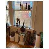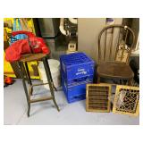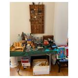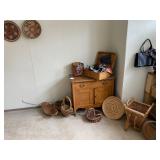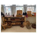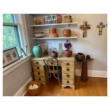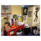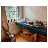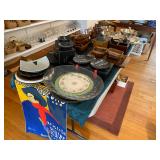 Antique Dry Sink w/Tin Liner, Ethan Allen Dresser w/Mirror, Wood Wash Stand, Antique Wicker Plant Stand w/Liner, Retro Style Lounge Chair w/Ottoman, Wood Bench w/Under Seat Storage, Maple Dresser w/Mirror, Oak Chest w/Antique Mirror, Maple Hutch, Recliner, Antique Oak Chest, Pair Twin Beds, Empire Chest, Painted Blue Antique Wood Chest w/Marble Top & Original Handles, (2) Light Oak Double Door Storage Cabinets, Pantry Cupboard, Knee Hole Desk, Assortment Of Bookshelves, Free Standing Victrola, Table & Floor Lamps Including Mid Century Pull Down Wall Lamp, Double Gooseneck Floor Lamp, Unusual Washing Machine Agitator Table Lamp, etc., Wall Mirrors, Many Pieces Of Art Work Including Exhibition Posters, Prints – Many Pieces Signed, Large Collection Native Art Masks, Woven Baskets & Carved Figurines – Some Free Standing, Newer Pottery Bowls, Plates, Vases, etc., Hand Painted Cow Parade, Massive Amount Of Baskets – Bread, Covered, Serving, Fruit, etc., Antique Piano Stool w/Claw Feet, Area Rugs, Set (4) Bentwood Chairs & Other Assorted Chairs, Collection Of Brassware, Antique Haviland Limoges Fish Set w/Large Oval Platter & (12) Plates, Mid Century Wood Salad Bowl Set, Serving Platters, Salt & Peppers, etc., Stemware, Multiple Sets Dinnerware & Assorted Plateware, Small Appliances, Corning, Pyrex, Bakeware, Stainless Flatware, Silver Plate Serve Ware, Ladies Clothing (M) & Accessories – Scarves (Some Silk), Handkerchiefs, & Purses Including New Dooney & Bourke, Coach, Italian Leather, Cole Haan, etc., Ladies Costume Jewelry, Linens – Table & Bedding, Portable Sewing Machine & (1) In Cabinet, Tons Fabric, Notions, Old Buttons, Vintage Lace & Trims, etc., Tons Craft Items Including Paints, Tacky Glues, Leather Strips, Beading, Canvas & Cloth, etc., Books, Paper Ephemera Including Newpapers, Photos & Greeting Cards, Many Albums – Some Rock, Assortment Of Pin Back Buttons – Political & Slogan, Office Desk, Chair & Supplies, Massive Amount Cleaning Supplies, Tall Rubbermaid Style Double Door Storage Cabinet, Metal Double Door Storage Cabinets, Painted Red Tin Storage Locker, Assorted Lumber Pieces, Aluminum Step Ladder, Hand & Power Tools, Hardware, Craftsman Tool Caddies, Metal & Plastic Shelving, Stacking Patio Chairs, Nordic Track, Stepper, Treadmill, Christmas Decor, Brass Coal Hod w/Lions Head & Liner, Brass Fireplace Tools, Vintage Corona Typewriter In Case, (3) Vintage Barbie Cases w/Miscellaneous Content, Carved Wood Cottage Clock & Numerous Vintage Wood School House Clocks – Some As Is, Stoneware Crocks & Jugs, Primitive Cast Iron Pieces Including Counter Top String Holder, Trivets, Shoe Lasts & Assorted Shoes, etc., (2) Vintage Milk Cans, Copper Boiler, (3) Wood Nail Barrels, Many Primitive Items Including Large Mallet, Carvings, Plow Plane, etc., Antique Bottles, Army Cot, Duffel Bag, Arcade Wood Table Top Coffee Grinder w/Paper Label, Junior Zither In Original Box, Assortment Of Bentwood Chairs, Vintage Aluminum Picnic Cooler, Wood Canada Dry Case, Printers Tray, Vintage Chicken & Rooster Collection, Antique Metal Counter Balance Figurine Of Fighting Soldiers |