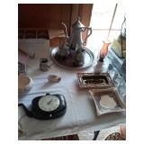 ITEMS BEING OFFERED INCLUDE: 1960's electric lighted Pepsi advertising clock; antique oak wall phone; MCM hanging swag light; vintage advertising trays; jewelry; Flexsteel sofa; two swivel rockers; electric lift chair; coffee and matching end table; bookcases; dressers; desks; dining room table with six chairs and one leaf; buffet server; kitchen table with four chairs and one leaf; full size bed; rocking chair; lamps; clocks; washer and dryer; upright freezer; small kitchen appliances; Pfaltzgraff dinnerware; Pyrex mixing bowls; glassware; NutriTech cookware; microwave; early 1950s wedding dress; linens; mirrors and artwork; vacuum; books and vintage vinyl records; flat screen TV; luggage; roll around toolbox; tools; vintage wood tool box with vintage tools; Christmas decor and LOTS, LOTS MORE!