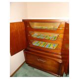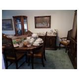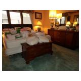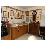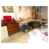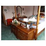 Strasbourg Manor Clock, antique rocking chairs, small pedestal table, vintage Hausake-Harlen chairs, oak coffee table, vintage large Italian glass table lamps, vintage end tables, dining room table with buffet and china cabinet, oak kitchen table with 4 chairs, Thomasville queen bed with dressers and nightstands, table lamps, 4 drawer Lea dresser, MCM King headboard with 2 night stands, vintage dresser set, wall art, oil paintings, blonde wood side table with matching coffee table, leather sofa, and recliner, kitchen table with yellow faux leather chairs, media cabinets, bookshelves, crystal stemware, china sets, and more. KITCHEN: Kitchenware and small appliances. CLOTHING AND JEWELRY: Ladies' clothing is mostly Mediums. Shoes. Costume jewelry. Men's cufflinks. COLLECTIBLES: Our client liked to go out metal detecting so we have a variety of FOUND-type items: medals, broken jewelry, etc. Bell collection knick-knacks and smalls, Louis L'Amour book collection, clocks and clock parts, watermelon depression glass, games, ship models, vintage barware, playing cards, Hargrove painting, books, Jim Beam bottle collection, beer steins, fishing lures and reels, vinyl records, horseshoes, Anthes flame guard railroad torch, wooden hat block, animal mounts, insulators, bottle collection, and more. GENERAL: Cleaning products, linen, towels, power tools, general tools, personal care products, filing cabinets, and more.