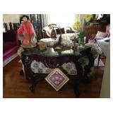 Thursday & Friday 9am to 5pm - Saturday 9am to 4pm - Discounts on most items Friday & Saturday !!!!! This sale is conducted by Antiques & Collectibles @ 14th from Huntington,WV The owners of a stately home located in this Ohio River Valley town are downsizing. They have selected many upscale items from their lifetime collection for this sale. There are also many other household and personal items included so there is something for almost everyone. Porch - Wicker furniture, tables, chairs, flower stands, and more. Entry and Hallway - Round entry table, round rug, chair set, tables, vintage typewriter, dolls, lamps, telephone cabinet, vintage black dial telephone, oil paintings, carved mirrored hall table, flower stands, bookcase, sewing cabinet, vintage stained glass window panel, vintage triple mirror dresser, beaded purses, vintage cabinet from Tombstone Hotel and décor items. Living Room - couch & chair set, marble top hall / couch table, oak side table, Stereoscope Viewer & 3D photo pictures,Edison Cylinder Phonograph with horn & cylinders, Scott table lamp, coffee table, fainting couch, Pulaski display cabinet with curved glass doors, mantle clock, floor lamps, side chair, area rug and matching hall runner and many décor items. Dining Room - Carved table and 4 chairs, area rug, small lighted display cabinet, painted fireplace screen, bowl & pitcher, cooper wash tub with lid, side chair, antique buffet, mirror, large lighted display cabinet, needlepoint chairs, Country Rose ( dishes - large bowl & pitcher - large jars with lids ), pictures, dishes, glassware, china and décor items. Office - Large Roll Top Desk, Walnut Bookcase, Oak Library Table, large Elk Pelt, 8' - 5" Sail Fish Mount, Tall Library Card Cabinet with roll up front cover, Bookcase, Books, vintage gun cases, plastic gun case ( - NO GUNS -) desk chairs, oil paintings and décor items. Kitchen - Hand-crafted kitchen cabinet unit, Norwalk Model 270 Juicer, milk bottles, bottle carrier, jar butter churn, crocks, churns, dashers, wood storage box, oil paintings, and various décor items. ( Home owners are keeping most of the everyday household kitchen items ) Basement - Matching large upright freezer and refrigerator, linens, bed spreads, used and new light fixtures, picture frames, lamps, table fans, ceiling fan light kit, toys, vintage Fisher Price Toys, mirrors, pieces of marble, craft items - ( buttons, rubber stamps, scrapbook supplies, paper, craft kits, electric personal cutter machine, flower stem attachment press, scissors and more ) cabinet with base, wall shelves, bookcase, VCR tapes, DVD's, CD's and lots more. Garage - Craftsman 10" Table Saw, Dell Table Saw, various corded power tools, portable air compressor, car battery charger, power washer, John Deere mower, brad nailer, flat bed planner, nails & screws, ladders, screwdrivers, drill bits, saw blades, small hand tools, hammers of various types, tool boxes, shop vac, plumbing parts & supplies, paint tools & supplies, stains, cleaners, yard tools and much more. There is some lumber available - 2 1/2 x 6 double T&G boards x 12ft - 1 x cedar boards - oak planks - other miscellaneous size boards Wood shelves, plastic storage cabinets, wood yard chairs, vintage cast iron bath sink, fiberglass utility tub, wood wall phone, new electric sub panel box with cover, Aluminum 2 wheel cart ( converts to 4 wheels carrier ), heavy metal mail box, plastic step stool and many other treasures. |