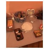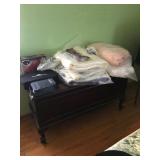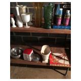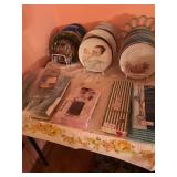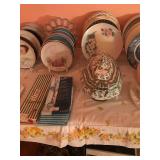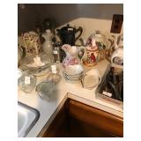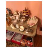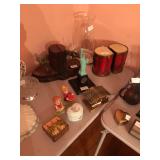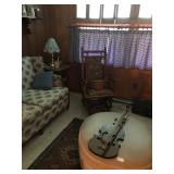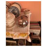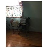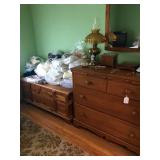 Samsung LG washer and dryer. Cherry drop leaf dining table, Maple twin bed room set, Traditional sofa and accent chairs. 5 piece glass and metal framed table and chairs, with love seat. Slant front desk, a pair of director chairs, a country rocker, and a large round ottoman. A sewing machine, and lots of silver-plate. A large collection of plates, Bohemian glass, a 45 record player plus turntable, and records. VHS movies, vintage cameras, and a TV. A vintage wedding dress, vintage cooler, Christmas lot, ladies clothes, and garden tools. A collection of bisk birds, mirrors, and an oil painting by Louis. Prints, linens and so much more.