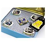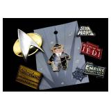 113 Assortment of 8 Disney Hidden Mickey Trading Pins No Duplicates Assortment of 8 Disney Hidden Mickey Trading Pins. No Duplicates. Great condition. One new in packaging. 114 Hollywood Movie Pins Bundle Group of 6 Star Wars Trilogy Star Trek Blues Brothers Hollywood Movie Pins Bundle Group of 6 Lot includes: House of Blues Brothers Jake Elwood bear pin with original background card 1988 Paramount Films Star Trek logo pin 1999 Star Wars celebration pin, Denver 1987 Star Wars Trilogy pins, Star Wars, Empire Strikes Back, and Return of the Jedi 115 Disney Trading Pins and Keychains Assortment of 5 Disney Assortment of 5 Pins Lot includes: Disney Catalog Pin Trading keychain 08 Mickey Red and Black keychain 2002 Mickey Fourth of July pin with electronic lighted fireworks, doesn’t work 2007 Disney KOC 20th Anniversary Limited Edition 750 pin Limited Edition of 800 trading pin 116 Disney Salutes Cast Exclusive Pins Group of 5 Mickey Donald Disney Salutes Cast Exclusive Pins Group of 5 Mickey Donald. No duplicates. 117 Disney Salutes Cast Exclusive Pins Group of 5 Mickey Donald Goofy Disney Salutes Cast Exclusive Pins Group of 5 Mickey Donald Goofy. No duplicates. 118 Disney 2002 Limited Edition Fourth of July Star Spangled Banner Bundle of 4 Disney 2002 Limited Edition Fourth of July Star Spangled Banner Bundle of 4