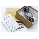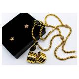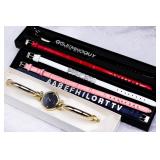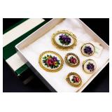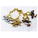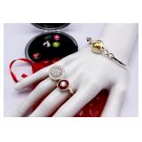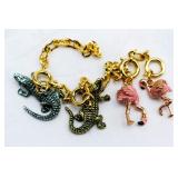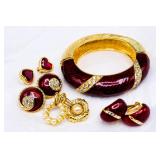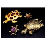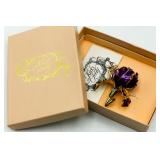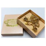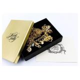 Over 300 lots of fine jewelry, costume, & Walt Disney collectible pins. This collection spans decades and styles. Shipping is available on all lots, pick up will be held at our NKC office. Look for sterling silver fetish charms, onyx, opal, turquoise, Bob Mackie, Joan Rivers, Sarah Coventry, and so much more! 0 Super Important Information & Cat Facts Pick up for this auction will be held at our NKC office on Tuesday, May 16th from 10am-5pm by appointment. Shipping will be available on all lots. When you receive your invoice just respond to the email that you would like shipping. A group of cats is called a clowder https://www.merriam-webster.com/dictionary/clowder 4 Diamonique QVC Rings, Bracelet, and Pendant Marked DQCZ, four Diamonique for QVC items with brilliant gems. One is a lovely .5" sterling silver pendant with creamy blue enamels and sparkling gemstones. Also, a gem encrusted heart charm overlapping a larger silver charm, on a small, 2.5" diam. chain bracelet. Two size 8.75 rings are also in this group; one silver with 5 bright colored gems, the other a solitaire with very modern satin finish silver band. 5 Vintage Rhinestone Sterling Stretch Bracelet This vintage rhinestone bracelet is sterling silver, .5 inch wide. Good condition with all stones intact, needs some cleaning. Expands from 2 to 3 inch diameter approximately. 6 Stunning, Iridescent Mexico Silver Pendant This larger pendant seems magical with a polished, color filled centerpiece that appears to be made up of abalone shards or moonstone, framed in ornate sterling silver, measuring 2" full length. Stamped Mexico and 925. 7 Long and Lustrous Sterling Silver Rope Chain 1/8" sterling silver rope style chain in great, sparkling condition, and measures 29" total length. 8 Fabulous Silver and Malachite Aztec Calendar Pendant Brooch The beautiful and bold 925 Mexico sterling silver brooch measures 1.75" and can be convertible as a pendant. An intricately detailed Aztec calendar seems to hover in front of a background of richly colored malachite inlays on black. 9 Colorful Vintage Pins and Pendants One owl with green stone and gem accents, gold tone, 1.5". Millefiori cross pendant, sterling silver, 1.5" tall. Sterling silver Baltic amber tricolor dragonfly pendant, 2". Two gold tone and colorful metallic enamel cloisonne pins; a butterfly and heart, 1"-1.5" Little sterling silver dragonfly, .75". Double sided shamrock pendant with six green gems on brushed gold finish. 10 Turtle Power! Teeny Tortoise Pins and Pendants One sterling silver tortoise pendant on satiny red cord, 1.25 inch. A 1 inch abstract sterling silver tortoise pin. Aventurine green carved turtle on black cord, 1.25". Studded turtle pin, branded Gerrys, 1.25". Great sterling silver and amber tortoise pin, measures 1.25". 11 Shiny and Tiny Bits of Vintage Gold tone and glitter enamel snowflake by Danecraft, 2" pin. 17 Jewels dainty old Dorset ladies watch, fair condition. Blue enamel and sterling 1" butterfly pin. Goldette mesh silver tone bracelet with rhinestone accents. Damascene, Toledoware gold and black fan pin with 24k filigree, 2". Cross pendant souvenir from St Mark's Basilica, Venice. 1.5". 12 Beautiful Little Beetle Brooches Two D'Orlan beetles, 1" each, with metallic color on gold finishes and brilliant crystal faces. One unmarked gold bug, 1.5", with tiger's eye cabochon center. One unmarked 1" beetle with gold and red stone and gem accents. 13 Kirks Folly Charms and an Opal Pendant Four whimsical charms by Kirks Folly, with opaline enamels and rhinestone details. A fairy, a wand, a unicorn, and a castle. Each approximately 1". Also a very nice .5" marquise opal/gem, gold pendant, with 17" chain. (Not branded) 14 Silver Rope Chain and Small Snake Ring Very small silver snake ring size 3.5, and unmarked 24 inch rope chain, silver, great condition. 15 Vintage 14k Atlantic Jewelry Co. Amethyst Ring Very cute vintage 14K amethyst ring, floral design, size 5. Marked ATL, in nice display case. Diamant's Jewelers, Kansas City. 16 Bob Mackie Phoenix Brooch 2.5" bold phoenix design, like new in box. Multi color enamel on gold tone with blue cabochon center. 17 Glitzy Kenneth Jay Lane and Kirks Folly Pieces Kirks Folly Crystal and enamel frog pin, 1.75". Copper finish bow pin full of pink gems, KJL by Kenneth Jay Lane, 2.5". Silver tone stretch bracelet with rhinestone star, Kirks Folly. Kenneth Jay Lane 1.25" gold tone clam shell. Kirks Folly Cherub Heart locket w raised cameo framed in iridescent crystals, 1.25". 18 Kirks Folly Pegasus Brooch 2.75 inch tall pin by Kirks Folly depicts a pegasus with wings spread, enhanced with beautiful irridescent enamel and multicolored rhinestones. 19 Kirks Folly “Divine Diva” Watch Like new, in it's box, the Divine Diva watch by Kirks Folly presents an illustrated witch on broomstick, framed in glitzy multicolored rhinestones on gold. The wristband ties in with glittering ruby red and gold faux leather. Watch is water resistant with stainless steel back. 20 Kirks Folly Beaded Snowflake Bracelets Three elastic bracelets by Kirks Folly, full of faceted beads, metallic touches, and glistening snowflakes. All are like new, with tags still attached. 21 Kirks Folly Six Piece Cherubs, Moon, and Fairy Pendant and Necklace Set A whimsical wardrobe of Kirks Folly signature themes including a rope style choker, chain, and lustrous beaded necklace, interchangeable with three pendants. New condition in box, all with gold finish. 22 Kirks Folly “Love Never Dies” Bracelet and Necklace Set in Silver Finish Silver tone chain and faceted beads sparkle in this matching bracelet and necklace featuring a translucent lavender cherub pendant. New condition in original box. Back of pendant reads "Love Never Dies". 23 Kirks Folly “Love Never Dies” Bracelet and Necklace Set in Gold Finish Sparkling beads and chainlink gold tone necklace and bracelet set, featuring a glowing, translucent cherub pendant. Condition is like new, in ori