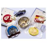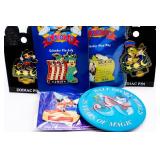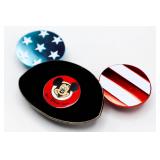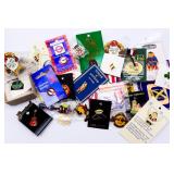 Lot includes: 2005 Limited Edition of 750 America Featured Artist Trading Pin with moving parts that are in working order. 2002 Limited Edition 2500 trading pin 2005 The American Adventures trading pin 2005 trading pin 2005 trading pin 120 Six 2003-2004 Disney Independence Day, Patriotic Pins Mickey, Minnie, and Goofy celebrate the USA in this group of pins released 2003-2004, some cast exclusive and limited editions. 121 Election 2008 “Vote For” Disney Character Pins, Limited Series Like new with attached backing, these are three out of four in a limited edition series, commemorating the 2008 U.S. election and featuring iconic Disney characters. 122 Four Disney Character Christmas Pins Four holiday themed pins, including lImited edition, and passholder exclusive collectibles. Snow globe sparkles with glitter, Chip and Dale struggle to decorate a tree, Donald sings carols, and Grumpy... grumps. 2007-2008. 123 Seven Collectible “Hidden Mickey” Pins Hidden Mickey pins are collectibles featuring a tiny Mickey icon within the image and are distributed by park cast members. Limited series and sets. Generally less than 1". 124 Disney’s Chip and Dale Collectible Pin Bundle All four pins feature Disney's beloved Chip and Dale characters. Included are: "Aloha" tiki Hidden Mickey pin, 2008 Hidden Mickey paint can pin, 2012 Limited edit. larger Animal Kingdom pin, 2005 Cast Lanyard series Hidden Mickey, 2008 125 Disney Dog Tag Series Character Pins Patriotic Mickey US flag design pin, 2001, and two of the limited edition punny "Dog Tag" series pins; F.G. Ment, and Don L. Duck 126 Large "Mickey Ear Hat Collection" Pin Celebrating 50 years, this is a Limited Edition of 750. "Mickey Ear Hat Collection" large pin measures 2" x 3.5". contrasting vivid metallic finishes with black felt on cap. 2005. 127 Disney Year 2000 Americana Pins, Limited and Exclusive Minnie Animal Kingdom, and Goofy MGM Studios, both limited editions commemorating 4th of July, 2000. Two year 2000 Mickey/USA logo pins One cast exclusive, Mickey's apprentice hat. 128 Chernabog, Rescuers, Haunted Mansion Disney Collectible Pins One "The Rescuers" title, vintage tie pin Two tiki theme Hidden Mickey cast lanyard series, 2005 One Character Crest Collection, limited edition, Chernabog (Fantasia) pin, 2008 Featured Attraction series, limited edition Haunted Mansion pin, 2008 129 Handful of Patriotic and Collectible Disney Pins Magic Music Days, 2002 event pin Mickey's iconic apprentice hat, cast exclusive pin, 2003 Stars n Stripes "D", 2005 Plus three other red, white, and blue patriotic Mickey pins 130 Disney’s Pluto, Donald Duck, Goofy, and Mickey Pins "Magical Milsstones" Bicentennial Donald pin 2005 Two great Pluto pins, larger one is 2008 Goofy salutes in red, white, and blue, 2008 Bronze-look aviator Mickey tie pin. 131 Five Collectible Disney Christmas Season Pins, Like New Three Disney Christmas stocking stuffer pins, attached to backings for personalized gifting, 2007-2008. Limited edition glittering snow globe pin, 2007, and a Magic Kingdom "Very Merry Christmas Party" pin, featuring Pluto, 2003. 132 Five Disney Exclusive and Event Pin One Animation Building pin from the 12 Months of Magic series Cast exclusive 2008 limited edition Thanksgiving pin in package 2008 Epcot Center passholder exclusive pin with attached backing Limited edition, 2005 Animal Kingdom, Independence Day pin New Year's Eve 2011, limited edition pin 133 Four Limited Edition Holiday Mickey Mouse Pins Celebrate some of those OTHER holidays with limited edition Mickey Mouse collector pins, dated 2005-2006; Saint Patrick's Day, Mardi Gras, Veterans Day, Presidents' Day! 134 More Stars, More Stripes, More Mickey Pins Red, white, and blue Disney World pin dated 2005, Uncle Sam Mickey pin dated 2006, ribbon bar Mickey medallion, 2006. Three more Mickey Mouse patriotic themed pins are included, not dated. 135 Mickey and Minnie Mouse Portrait Pins Red, white, and blue classic Mickey Mouse pin is approximately 2", not dated. Minnie portrait pin, 2003 Blue "Hidden Mickey" series Minnie Mouse pin, 2008 Two multi-portrait pins, in their packages, one Mickey, 2007. One Minnie, 2017. 136 Pirate Mickey, Personalized Plate Pins, More Americana Mickey Two license plate/lanyard pin series 2002/2003. Pirates of the Caribbean Mickey Mouse, 2007 USA Mickey, lanyard pin series Mickey with American flag star, not dated. 137 Disney Park Series 7 Collectible Mini Figurines Large group of tiny Disney characters, measuring approximately 1 inch each. This includes five of the opened packages, and 14 out of 18 possible figurines. No duplicates, each figurine is in its tiny plastic package. 138 Stainless Disney Character Bracelet and Keyrings Various Disney fairy themed charms on key ring, and silver fob. One stainless steel Disney character bracelet with interchangeable/removable links, 12 characters. Bracelet is currently personalized to read JEANNE and STU, and comes with 3 extra characters; Lady, Tramp, and Maleficent. Apprentice Mickey, and very nice metallic/enameled Disney charms on a large key ring. 139 Various Disney Park Souvenirs and Novelty Items Two Disney Catalog tags, classic Minnie and Mickey enameled in color. One Mickey shaped Walt Disney World carbiner attachment. AAA 2008 Disney "Year of a Million Dreams" coin One pack of Star Trek trading cards, 7 postcards, and 8 Disney Dollars. One Planet Hollywood shot glass, Wonder Woman vintage keychain, and Jiminy Cricket ornament- all items great condition. 140 Disney Souvenir Buttons and Pressed Pennies Three Magic Kingdom/Toy Story pennies, an Epcot Center Mexico pressed penny, and ten Disney park souvenir buttons, 2-3 inch diam. 141 Group of Disney Souvenirs and Stickers Included are a large bunch of Disney stickers like new, a Safari Journal set with journal, stickers, and two buttons from Walt Disney World's Animal Kingdom Lodge. Also, one Tinker Bell, calculator, key ring, Aladdin's lamp pin, and an Enesco Mi