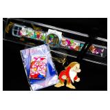All enamel pins are shiny, in like new condition and the presentation case shows normal signs of wear and tear with surface scratches. 104 Assorted Disney 2008 Trading Pins Limited Edition Assorted group of 6 Disney 2008 Trading Pins Lot includes 4 limited edition pins and 2 trading pins. Each pin is in like new condition and comes with original background card. Veterans Day 2008 Limited Edition of 2500 NYC 2008 Limited Edition High School Musical 3 Opening Day 2008 Limited Edition of 2000 Walt Disney Day 2008 Limited Edition of 2000 pocket watch Peter Pan Maleficent More information at www.disneypins.com 105 Disney 2008 Mickey Mouse Vinylmation Series Junior Trading Pins Group of 6 Assorted group of 6 Disney 2008 Mickey Mouse Vinylmation Series Junior Trading Pins. No duplicates. 106 Disney 2008 Mickey Mouse Vinylmation Series Junior Trading Pins Group of 6 Assorted group of 6 Disney 2008 Mickey Mouse Vinylmation Series Junior Trading Pins. No duplicates. 107 Disney 2008 Mickey Mouse Vinylmation Series Junior Trading Pins Group of 6 Group of 6 Disney 2008 Mickey Mouse Vinylmation Series Junior Trading Pins. No duplicates. 108 Assortment of Disney 2008 Limited Edition Trading Pins The Main Street Gazette and Monorail Set Assortment of 7 Disney 2008 Limited Edition Trading Pins The Main Street Gazette pins include: Scoop Successful Scorin’ Secrets About Soarin’! Fun on the Frontier Looks Familiar! The Scoop Kilimanjaro Safaris Expeditions Big Attraction! Monorail Limited Edition of 1500 Set includes 4 of 5 pins in the series More information at www.disneypins.com 109 Pirates of the Caribbean Limited Edition Treasure Chest Bundle Disney Pirates of the Caribbean treasure chest bundle includes: :: Toy treasure chest and coins :: Pirates of the Caribbean Adventures on the 7 Sea Lagoon leather looking purse with wooden dice and 3 limited edition of 500 map pins. :: 2008 Pirates of the Caribbean Limited Edition of 3500, 10 of 12, trading pin collection. :: 2006 Disney trading pin :: The Disney Club Member Exclusive pin 110 Disney Lilo & Stitch Assortment of 6 Stitch Limited Edition Trading Pins Disney Lilo & Stitch Assortment of 6 Stitch Limited Edition Trading Pins Lot includes: 2008 Disney Monorail Set Limited Edition of 1500, 1 of 5, comes with background card and missing one pin cap 2006 Disney Around the World trading pin with background card 2004 Disney Limited Edition 2500 Fourth of July trading pin 2006 Disney Mickeys American Pin Festival 2006 Disney trading pin Disney Cast Lanyard Collection 1 of 3 111 Assortment of 8 Disney Trading Pins No Duplicates Assortment of 8 Disney Trading Pins include: 2008 Hidden Mickey Pin 2 of 5, Cinderella Hidden Mickey Pin 2 of 5, Beaker Hidden Mickey Pin 3 of 6 2008 Hidden Mickey Pin 5 of 5, Disney flag Cast Lanyard Series, Eeyore Cast Lanyard Collection 1 of 4, license plate Cast Lanyard Collection 3 of 5, Mickey and Goofy Disneyland 50 year commemorative pin 112 Disney Trading Pin Assortment of 6 Figment Cast Lanyard Collection Walt Disney Travel Co, Inc, Mickey in plane Disney Sea Tokyo Grand Opening Cast Lanyard Collection 3 of 4 Figment Cast Lanyard Collection 3 of 4 Figment Cast Lanyard Collection 2 of 4 Figment Cast Lanyard Collection 2 of 4 Figment