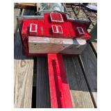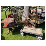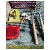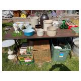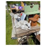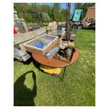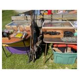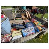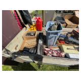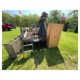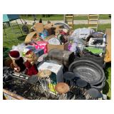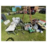 LIVE AUCTION WEDNESDAY mAY 10 9:30AM 34825 N DIAMOND POINT RD FARMINGTON BASS HOUND 10.2 2 PERSON BOAT SELLS FIRST THEN STACK OF ALUMINIUM. THEN HAY RACKS OUT SIDE 4 RACKS AND TRAILERS OF: YARD DECOR, NEW TREE PROTECTOR SURROUNDS, TOTES, STEP STOOLS, 2 COMPOUND BOWS, COMPETETION BOW IN PLANO CASE, CAMO FLOATING TUB, CAMO WADERS WITH DRYER, 7.5 WET TILE CUTTER, NAIL GUN, SUMP PUMP, RYOBI SANDER, CANVAS BLIND, 2 STATIONERY BIKES, GALVANIZED TUBS, WATER CANS, SAUSAGE PRESS, WALKING PLOW, IH MOLDS, LADDER, CAST IRON SKILLETS, CROCKS, FISHING ROD N REELS, TOTES W/LIFE JACKETS, SHOWER SEATS, ARE RUGS, LEATHER JACKETS, WOOD AND METAL SHELVING, SHOW CASES, SIGNS,KIDS PLAY HUT, WOOD PICKET FENCE, PIECES OF TREE WOOD TO MAKE SIGNS. TOTES, INSIDE: 5 BOXES RECORD ALBUMS ROCK 80S COUNTRY, VCR TV, NEW PRINTER IN BOX, REDWING DUTCH GIRL COOKIE JAR, SHAWNEE PITCHER, PYREX, PFALTZGRAFF, SEVERAL COLLECTOR BOOKS, SACAGEWA COINS AND BOOK, NEW TY BABIES, DIE CASE JD TRACTOR, FORD, 2 SEMIS, STURCTO CATTLE HAULER, TONYS FRUIT MARKET CANTON IL REAGAN PAPER ITEMS, STATE POLITICAL PAPER WEIGHTS, COIN SORTER, HOUSEHOLD: NEW AIR PUIRFIER, ELECTRIC FIREPLACE, DEHUMIDIFIER, STEREO, NEWER SKETCHER SHOES, HOLIDAY DECOR, GAMES, DISHWARE, REALLY GOOD AND UNIQUE RECORD ALBUMS, OCCULAR, COIN SORTER, SOO MUCH