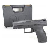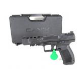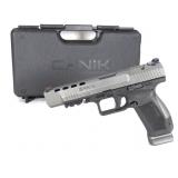 Serial #: T6472-21BC19611 CANIK, TP9SFx, Striker Fired, 9MM, 5.2" Match Grade Barrel, Polymer Frame, Tungsten Grey Finish, Warren Tactical Sights, Includes Two 20 Round Magazines, Holster, Interchangeable Backstraps, and Four Red Dot Interface Plates. The TP9 SFx was developed to serve as the premium version of TP Series of Pistols with its 5.20-inch barrel. The SFx comes with many new modular features for the shooter to enjoy, mostly for target shooting. This model enhances the shooter’s control on the pistol through front serrations and an extended slide; while improving its sight picture with a fiber-optic front sight and a blacked-out rear sight. The tolerances are tightened and the trigger, which has an integrated safety, comes with a shortened pull distance to allow increased firing rates. An optic plate mount was introduced to facilitate the mounting of popular Red-Dot sights, it also allows mounting of a cocking lever for smooth loading. Thanks to the weight-reducing cuts on the slide, the weight of SFx is similar to that of the standard size TP Series Pistol; yet it allows the shooter to extend their capability and accuracy, in order to reach targets further out on the range. 30